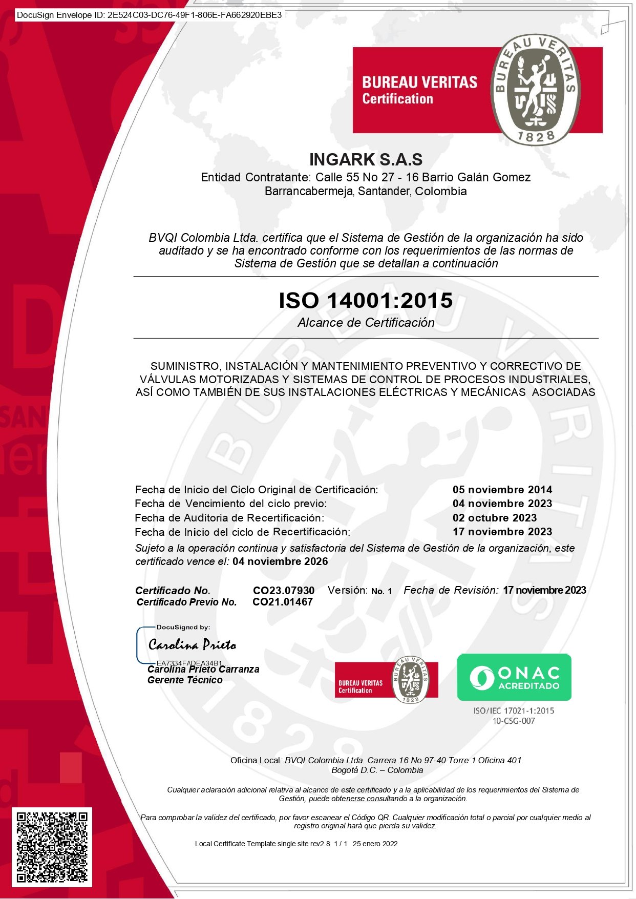 Sistema de Gestión Ambiental de la Organización ISO 14001<br>